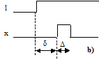 Fig. 10.3 - Monostabile: a) simbolo; b) tempificazione