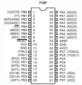 L'ATMEGA 8535 presenta 40 piedini, ognuno con una funzione diversa. Qui sotto sono descritti i più importanti: