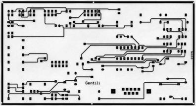 Ecco come si presenta la basetta al termine di circa 10 cicli di lavaggio: come possiamo vedere il rame di cui era ricoperta la lastra di vetronite è stato lavato via, tralasciando solamente i punti in cui era presente della vernice. Adesso la basetta è quasi pronta: resta solamente da eseguire qualche altro lavaggio per poi procedere all'operazione di foratura. |