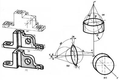 Costruiamo la proiezione frontale di un cilindro (fig.15a). Per prima si disegna la base che è un'ellisse e quindi gli elementi estremi. Si ricordi che i segmenti retti paralleli agli assi di proiezione mantengono il loro parallelismo anche nei confronti degli assi nelle proiezioni frontali. Per completare il cilindro si disegna la seconda base.