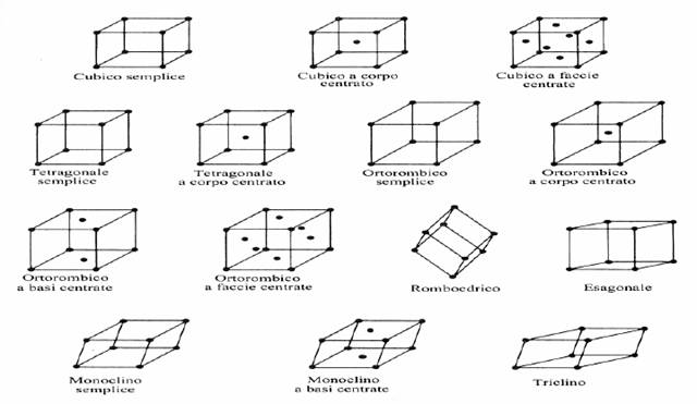 Siamo a conoscenza di 14 reticoli cristallini, cioè 14 modi diversi di disposizione degli atomi che compongono la materia di quei materiali.