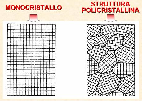La differenza quindi è nello sviluppo superficiale che definisce il reticolo cristallino e dato che la superficie ha un contenuto energetico, l'energia di un volume solido è data anche dalla sua superficie (nell'immagine: l'energia superficiale a destra è alta a sinistra no) la conseguenza è che i pluricristallini sono maggiormente modellabili.