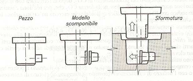 Nella figura sottostante è rappresentato l'uso di un modello scomponibile per renderlo estraibile dalla forma.