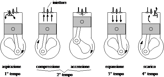 Figura 2 - Fasi del ciclo a 4 tempi di un motore a ciclo Diesel.
