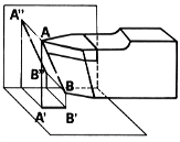 Le proiezioni si otterranno congiungendo nei tre piani di proiezione dei suoi punti d'estremità. Consideriamo lo spigolo AB di fig. 4a che rappresenta il tagliente di un utensile.
