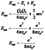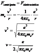 In sostanza, dunque, l'elettrone rotante intorno al nucleo obbedisce a tutte le leggi meccaniche della fisica classica ma non alle leggi elettromagnetiche, nel senso che durante la rotazione non emette radiazione. Con la meccanica classica si può perciò trattare l'equilibrio dinamico del sistema in uno stato stazionario, e calcolare, noto il raggio dell'orbita, la velocità, la frequenza, l'energia potenziale, cinetica e totale dell'elettrone rotante: