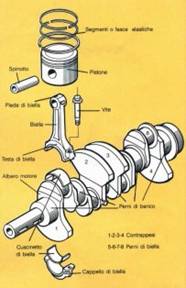 L'insieme consente di trasformare il moto rettilineo alterno del pistone, nel moto rotatorio dell'albero a gomiti