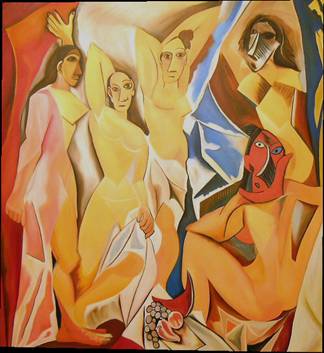 L'opera che segna definitivamente la svolta artistica di Picasso è il celebre quadro "Les demoiselles d'Avignon".L'opera rielaborata per mesi dallo stesso autore, come documentano i numerosi schizzi e studi preparatori, testimonia la faticosa ricerca di nuove formule espresive in grado di sovvertire la figurazione tradizionale. Il soggetto raffigura un gruppo di prostitute all'interno di un bordello di Barcellona; la scena comprendeva all'inizio anche due personaggi maschili, uno studente e un marinaio, che sono qui completamente scomparsi. Forme taglienti delle braccia, che si incastrano perfettamente intorno alla testa, annullano ogni distinzione tra spazio e oggetto raffigurato, per dare forma a personaggi scomposti, ritratti in pose assolutamente innaturali. Anche le facce sono viste contemporaneamente si fronte e di profilo, o le teste sono appoggiate su corpi girati di schiena, come se fossero staccate tra loro. Va riconosciuto al dipinto il merito di aver affermato in tutta la sua portata rivoluzionaria il Cubismo.