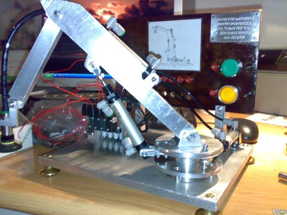 Il mio progetto mira a realizzare un braccio robotizzato capace di eseguire una sequenza di movimenti attraverso l'ausilio di pistoni pneumatici collegati a delle elettrovalvole a loro volta comandate da un PLC, da me programmato con il circuito da eseguire (vds. allegati).