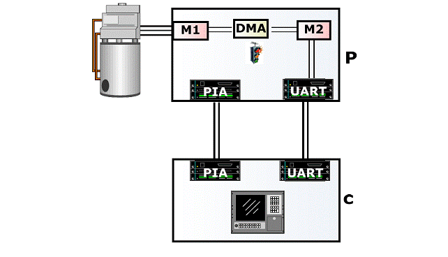 parallelo PIA e uno seriale UART. C può inviare comandi a P interfacciandosi