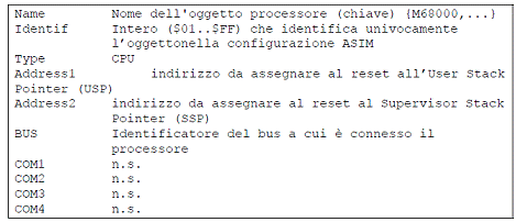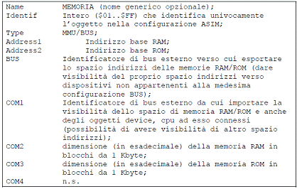 MEM-A rappresenta la memoria del sistema C ed è connessa al BUS che presenta l'id 01 (pari all'identificativo della memoria stessa). Ponendo Com2 a 0010, equivale ad allocare 10Kbyte di RAM, mentre porre Com3 a 0008 equivale ad allocare 8 Kbyte di ROM.