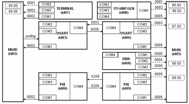 M2 rappresenta la memoria del sistema P ed è connessa al BUS che presenta l'id 04 (pari all'identificativo della memoria stessa). Ponendo Com2 a 0010, equivale ad allocare 10Kbyte di RAM, mentre porre Com3 a 0008 equivale ad allocare 8 Kbyte di ROM.