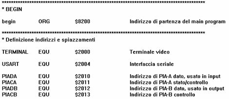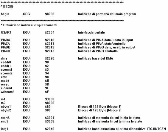Le istruzioni sono inserite all'interno della memoria a partire dall'indirizzo $8200 della RAM tramite l'istruzione ORG; vengono successivamente definite una serie di valori che verranno successivamente utilizzati.