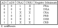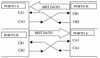 IRQA e IRQB verso il processore; le altre due linee, CA2 e CB2, possono essere