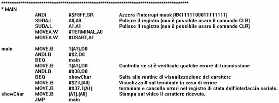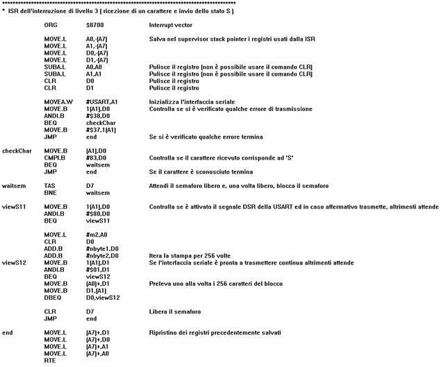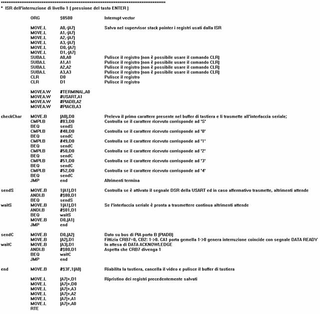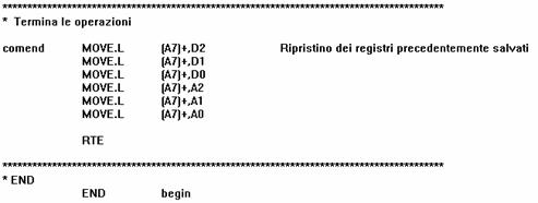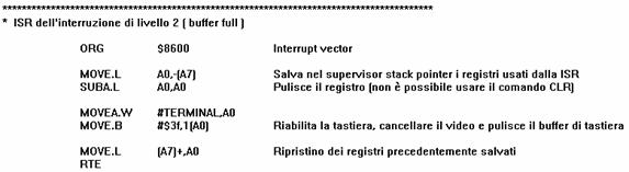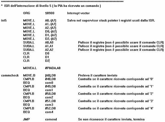 Si riportano infine, per completezza, il ripristino dei registri della ISR della PIA e il comando che chiude il codice del sistema P.