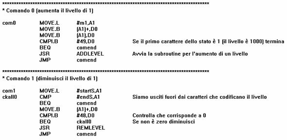 Partendo dalle posizioni della memoria in cui sono inseriti i 4 caratteri relativi allo stato effettuano l'operazione prescelta. Vengono in particolare effettuate delle chiamate alle subroutineADDLEVEL e REMLEVEL riportate di seguito.