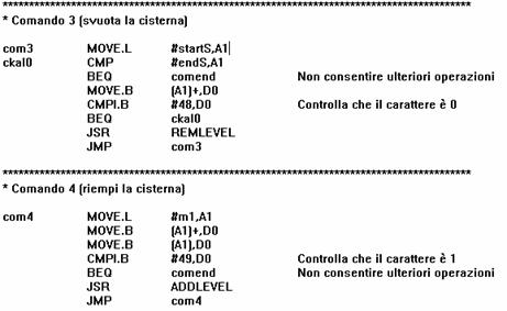 Il comando 3 ed il comando 4, infine, provvedono rispettivamente a svuotare la cisterna e a riempire la cisterna, utilizzando le stesse logiche che sono state introdotte in precedenza per gli altri comandi.