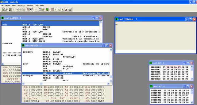 Questo primo screenshot, riportato in Figura 21, rappresenta una delle primissime fasi di configurazione del sistema: quella in cui deve essere inizializzato il contenuto della memoria M1.