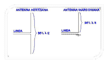 L'antenna hertziana ha resistenza di radiazione uguale a 73Ω, mentre quella marconiana ha resistenza di radiazione pari a 36.5Ω.