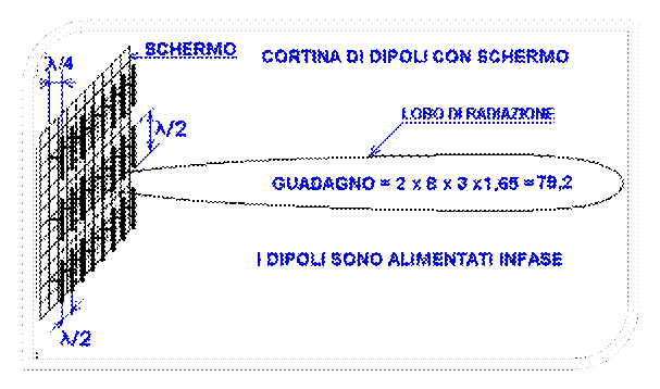 Se si vuole raddoppiare ulteriormente l'intensità del campo, si può mettere uno schermo costituito da una rete metallica dietro la cortina di dipoli e parallelamente ad essa, a distanza