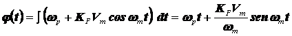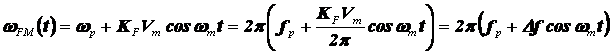 La pulsazione p ha un valore costante, nel segnale modulato la nuova pulsazione deve essere proporzionale, secondo una costante Kf caratteristica del modulatore, all'ampiezza del segnale modulante: