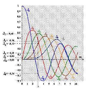 Le funzioni di Bessel possono assumere solo valori inferiori a 1 in modulo ed anche il valore 0.