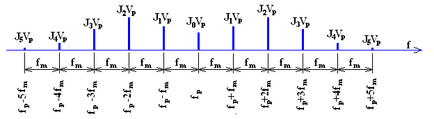 In base alla serie di Bessel si può dimostrare che il segnale rappresentante la modulazione in frequenza di una portante sinusoidale con una modulante sinusoidale, è rappresentato da infinite sinusoidi secondo l'espressione matematica: