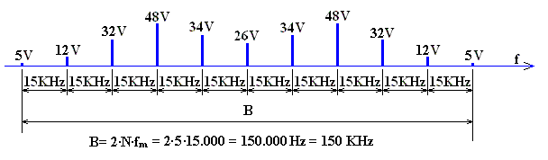 Ottenuti tutti i valori delle funzioni di Bessel, si traccia la banda del segnale modulato in FM: