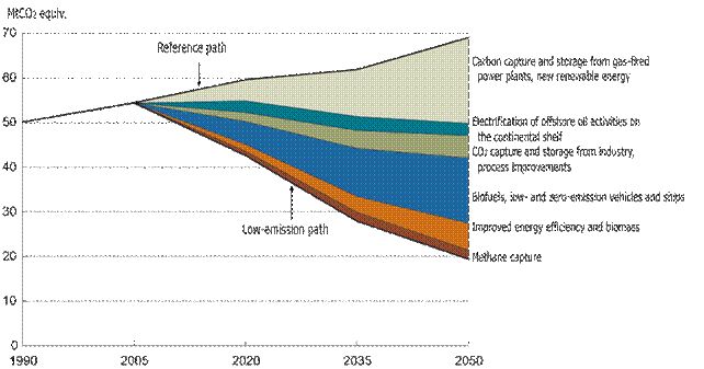 Se riducessimo le emissioni utilizzando vari accorgimenti riusciremmo a ridurre il livello di CO2 come riportato nel seguente schema: