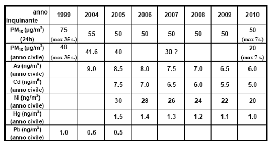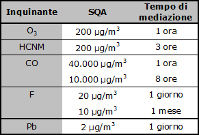 azoto, PM10, piombo, benzene e monossido di carbonio, ha abrogato