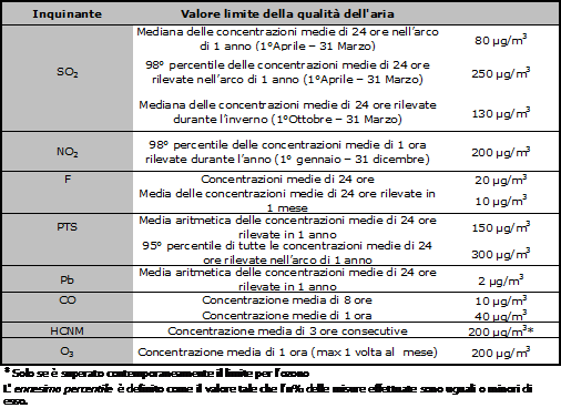 I primi standard di qualità dell'aria sono stati definiti in Italia dal DPCM 28 Marzo 1983 relativamente ai 'Limiti massimi di accettabilità delle concentrazioni e di esposizione relativi ad inquinanti dell'aria e dell'ambiente esterno'.