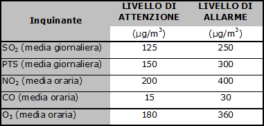 I livelli di attenzione e di allarme fanno riferimento, inoltre, ad indicatori di breve periodo (medie sull'ora o sul giorno) e vengono utilizzati per identificare situazioni critiche di carattere episodico. Il loro raggiungimento impone all'autorità competente di adottare opportune misure per contenere le concentrazioni di inquinanti e i periodi di esposizione, secondo piani di intervento operativi sviluppati e resi pubblici attraverso una tempestiva informazione alla popolazione.