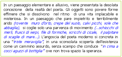 dentro di sé la sua ragione oscura di essere ( il male di vivere). Alla poesia non resta che specchiare la