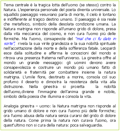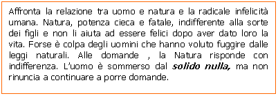 tragica condizione umana e senza viltà accetta e combatte la natura matrigna.