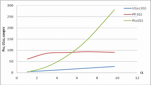 Come si evince dal grafico la curva della potenza persa in corto circuito Pcc risulta parabolica perché la potenza è proporzionale al quadrato della corrente, mentre le restanti due curve risultano lineari in quanto l'impedenza del trasformatore si mantiene praticamente costante. Dai calcoli si è giunti alla determinazione dei parametri longitudinali del trasformatore e della tensione di cortocircuito e potenza di cortocircuito percentuali: