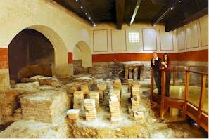 An unusual feature of the Roman Baths is this special heated room known as a laconicum. It was a small room of intense dry heat, although it could have been turned into a steam room by splashing water about. Either way you would have quickly broken out in a profuse sweat if you stayed here for more than a minute or two. You would then be ready to receive treatment with oil and a strigil to make you invigoratingly clean!