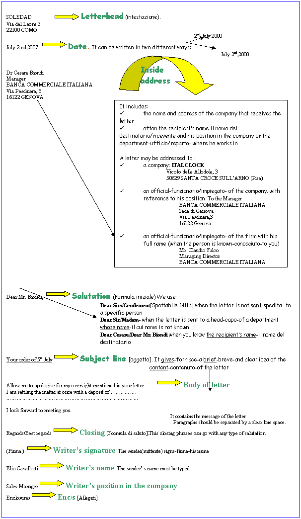 The layout of the letter may vary-variare-and can be one of two styles: