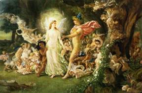 In the foreground there are two pairs of lovers, the women constant and the men changing their affections as the magic herb "love-in-idlessness) bids them.