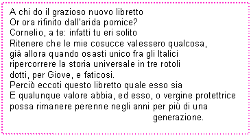 Corneli: destinatario, in vocativo; è Cornelio Nepote. Il dedicatario è sottolineato dal poliptoto tibi-tu.
