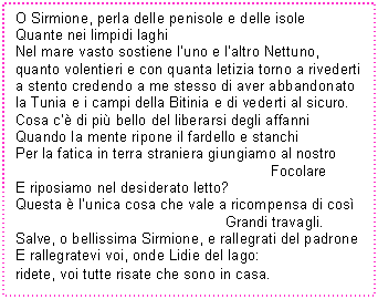 Nell'ultima parte del testo saluta i suoi luoghi.