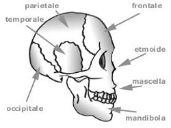 Principali ossa craniche (da notare la posizione dell'occipitale) |