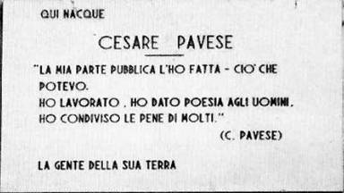 (A. Monti, in Cesare Pavese, biografia per immagini: la vita, i libri, le carte, i luoghi, S.S.B., Cuneo, Gribando Editore, 1989, pagg. 30).