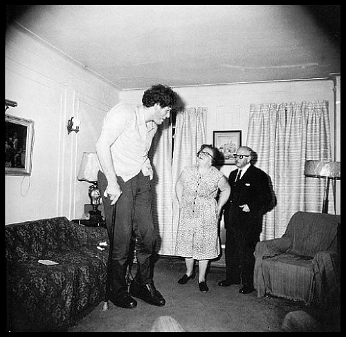 2 - Jewish giant at home with his parents in the Bronx, NY, 1970