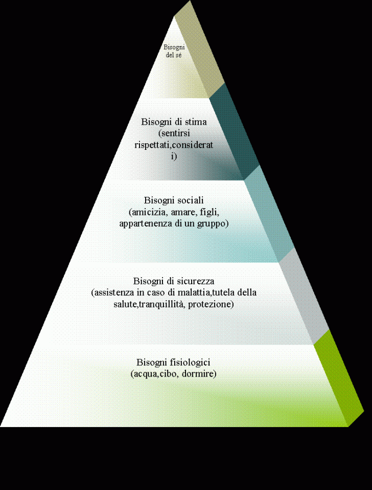 Secondo il psicologo americano Maslow ha evidenziato in 5 gruppi di bisogni fondamentali dell’uomo e svilupparsi completamente.