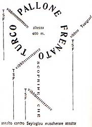 6. Abolire anche la punteggiatura. Essendo soppressi gli aggettivi, gli avverbi e le congiunzioni, la punteggiatura è naturalmente annullata, nella continuità varia di uno stile vivo, che si crea da sé, senza le soste assurde delle virgole e dei punti. Per accentuare certi movimenti e indicare le loro direzioni, s'impiegheranno i segni della matematica: +--x: = > <, e i segni musicali.