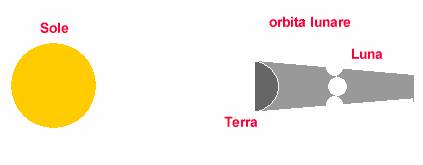 Quando il Sole, la Terra e la Luna sono perfettamente allineati, si ha un' eclisse di Sole o di Luna. Nella situazione mostrata nella figura qui sotto, in cui la Terra si interpone fra la Luna e il Sole proiettando la propria ombra sulla Luna, che viene così oscurata, si ha un' eclisse di Luna.