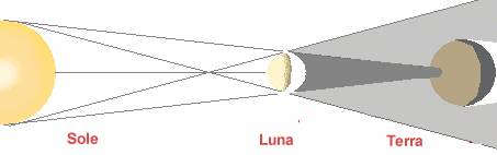 Considerando le dimensioni e le distanze relative dei tre astri interessati al fenomeno (Sole, Luna e Terra) si vede che il vertice a del cono d'ombra, proiettato dalla Luna in direzione opposta al Sole, viene a cadere molto vicino alla superficie terrestre, talvolta un po' sopra, talaltra un po' sotto.