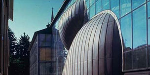 Imbert per mostrare il nuovo edificio bucato da due volumi di forma sferica.