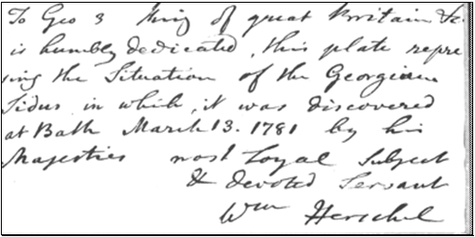 Figura 2 Dedica del pianeta. Biglietto autografo di Herschel