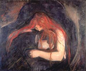 da un senso di minaccia e di crudeltà divorante. Nasce così l'identificazione della donna nell'immagine mostruosa del vampiro, (la donna che attrae e distrugge). L'uomo è preso da un senso di consunzione ed esce infranto e disfatto dall'incontro con la donna.